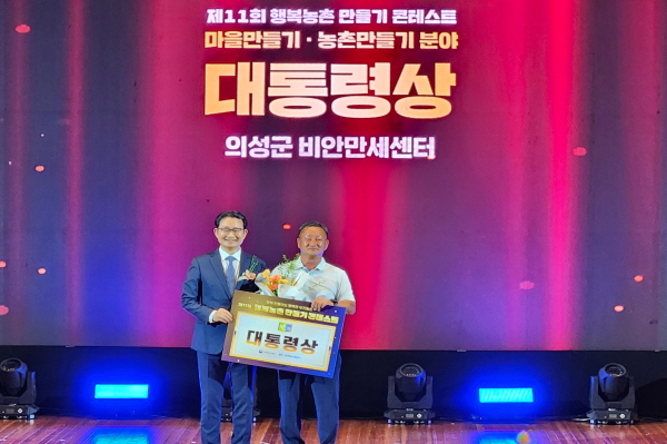 (경북=NSP통신) 조인호 기자 = 의성군(군수 김주수) 비안만세센터가 지난 4일 KT대전인재개발원에서 진행된 ‘제11회 행복농촌만들기 콘테스트’ 농촌만들기 분야에서 대통령상을 수상했다.