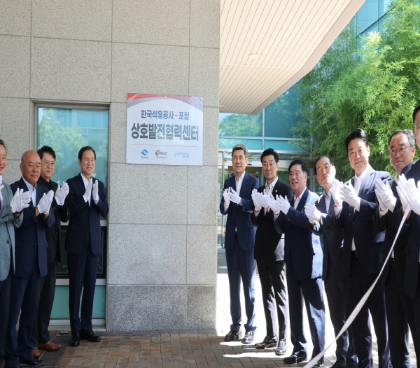 (경북=NSP통신) 조인호 기자 = 포항시는 5일 시청 의회동에서 ‘한국석유공사-포항 상호발전협력센터’ 현판식을 개최했다.