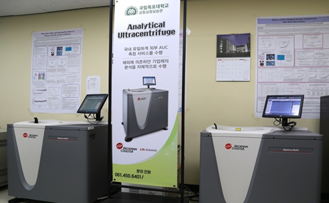 국립목포대 공동실험실습관은 2003년 도입하였던 분석용 초고속원심분리기(Proteomelab XL-A)부터 본격적으로 분석지원을 해왔으며, 2016년 개선된 신형 장비가 발표되자마자 추가 도입하고 2022년 한 대 더 도입해 총 3대를 운영했다.