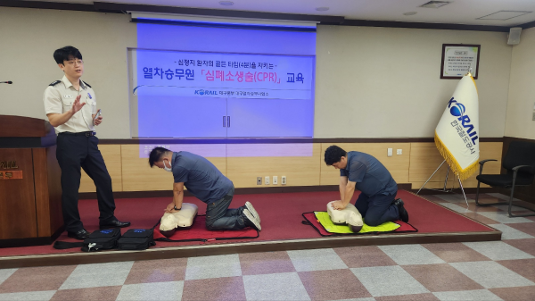 대구동부소방서 응급구조사를 초빙해 열차 내 호흡기환자 발생 등 응급상황에서 고객안전을 책임지는 승무원들이 신속대처할 수 있도록 △응급상황 시 행동요령과 응급처치 중요성 인식 △심폐소생술 △자동심장충격기 사용법에 대한 이론과 실습을 진행했다.