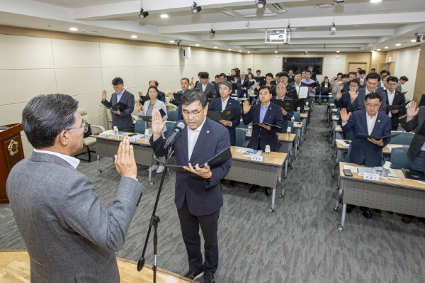 (경북=NSP통신) 조인호 기자 = 경상북도의회(의장 박성만)는 6일 도의회에서 2024년도 청렴서약식 및 반부패·청렴 교육을 개최했다. 이번 행사는 공직자로서의 청렴한 자세를 다짐하고, 도의회 전반에 걸쳐 반부패 문화를 확산하기 위해 마련됐다.