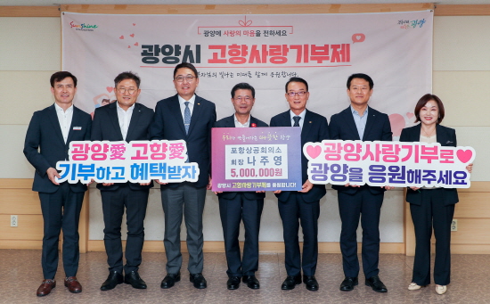 지난 8월 28일에 우광일 광양상공회의소 회장이 형제 도시 포항시를 방문해 고향사랑 기부금 500만 원을 전달한 것에 이어, 나주영 회장도 통 큰 기부를 이어가며 상생발전에 앞장섰다.