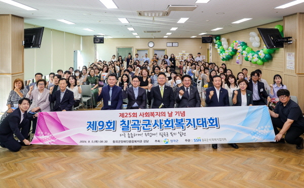 (경북=NSP통신) 김대원 기자 = 칠곡군은 지난 5일 칠곡군장애인복지관에서 사회복지시설 종사자 및 관계 공무원 150여 명이 참석한 가운데 ‘더욱 촘촘하게, 두텁게 칠곡군 복지실현’ 이라는 슬로건으로 제25회 사회복지의 날 기념 제9회 칠곡군사회복지대회를 개최했다.