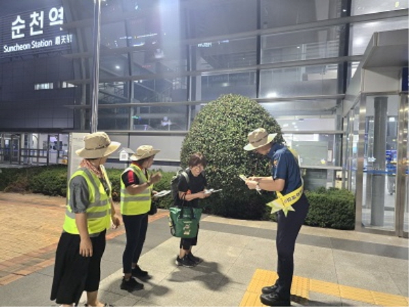 NSP통신-순천경찰서는 외국인 치안봉사단 13명과 함께 순천역 일대 야간 합동 순찰 실시 (사진 = 순천경찰)
