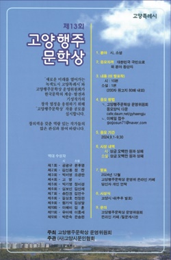 한편 시 관계자는 “고양특례시민의 문학에 대한 이해를 높일 뿐 아니라, 가치 있는 숨은 문학 작품 발굴로 한국문학 발전을 위한 중요한 기회가 될 수 있는 고양행주문학상 공모전에 열정 있는 등단 작가들의 적극적인 참여를 바란다”고 말했다.