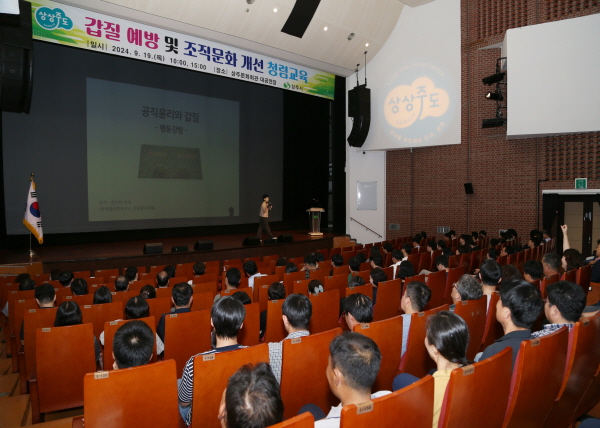 이날 교육은 오전, 오후 2회에 걸쳐 총 800여 명의 직원이 참석한 가운데 진행됐으며, 공직자로서의 공직윤리, 공무원 행동강령, 청탁금지법, 이해충돌방지법 등 청렴한 공직문화 확산 및 갑질 예방으로 올바른 조직문화 조성하기 위한 내용으로 구성됐다.
