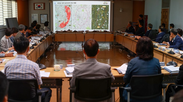 23일 전춘성 진안군수 주재로 부군수를 비롯해 간부 공무원들이 참석한 가운데 개최된 이번 대책 회의는 신정읍-신계룡 송전선로의 최적 경과대역에 포함되는 부귀면, 정천면, 주천면 주민들의 건강권과 재산권의 심각한 침해 우려의 목소리가 높아지는 가운데 이에 대한 대응 방안을 마련을 위해 마련됐다.