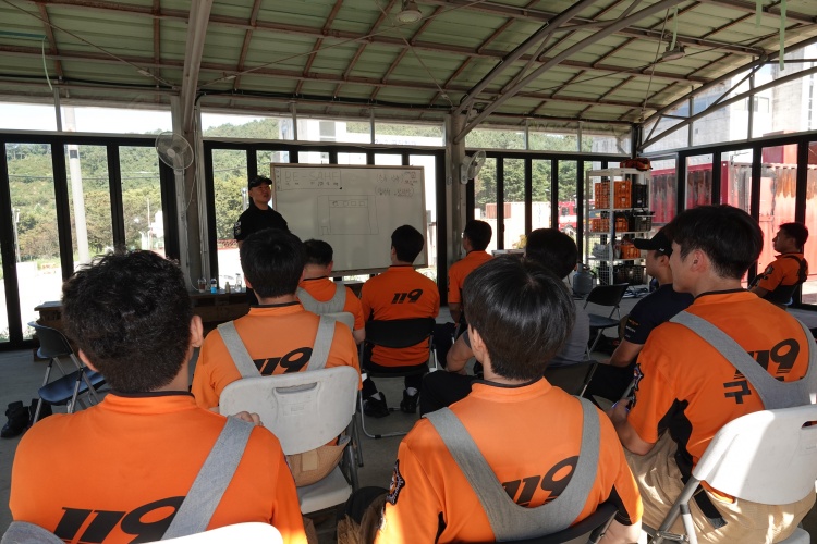 NSP통신-23일 용인소방서가 구획실 화재 대응능력 강화를 위한 화재진압 및 인명구조 훈련에 앞서 이론 교육을 진행하고 있다. (사진 = 용인소방서)