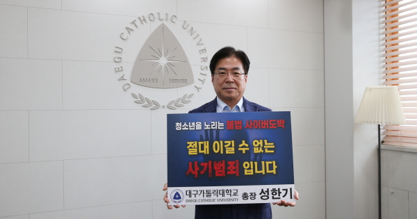 성한기 총장은 지난 19일 ‘청소년을 노리는 불법 사이버도박, 절대 이길 수 없는 사기범죄입니다’ 는 문구가 적힌 손팻말을 들고 인증사진을 찍어 청소년을 노리는 불법 사이버도박의 위험성을 알렸다.