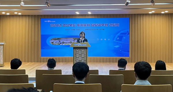 경북도는 23일 경북도청 다목적홀에서 김창희 KOTRA 종합행정지원센터장을 비롯해 경상북도와 시군의 투자유치 담당 직원 60여 명이 참석한 가운데 ‘2024년 경상북도 투자유치 담당 공무원 간담회’ 를 개최했다.