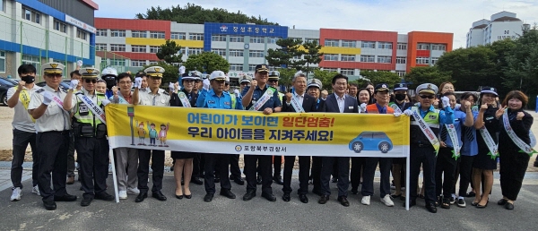 (경북=NSP통신) 조인호 기자 = 포항북부경찰서는 24일 장성초등학교에서 어린이 등굣길 교통안전 캠페인을 실시했다.