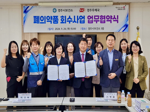 (경북=NSP통신) 조인호 기자 = 경주시보건소가 경주우체국과 함께 25일 시민 건강과 환경 보호를 위한 ‘우편서비스 활용 폐의약품 회수사업 업무협약’ 을 체결했다.
