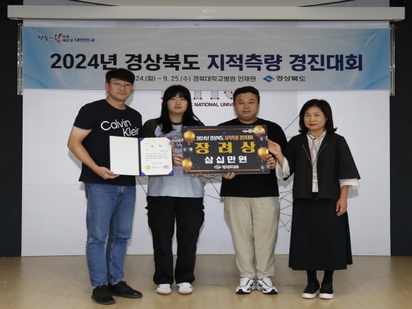 경산시에서는 토지정보과 소속 최상중, 황준호, 이현주 주무관이 팀을 이뤄 출전했으며 이들은 평소 갈고닦은 측량 실력을 발휘해 우수한 성적을 거두며 도내 3위에 해당하는 장려상을 수상했다.