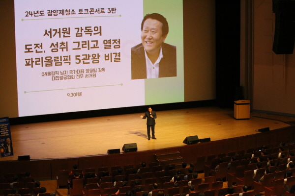 (전남=NSP통신) 강현희 기자 = 광양제철소(소장 이동렬)가 지난 달 30일 금호동 백운아트홀에서 직원, 파트너사, 지역주민들을 대상으로 진행한 서거원 전 대한민국 양궁 남자대표팀 감독 초청 토크콘서트가 성황리에 마무리됐다.