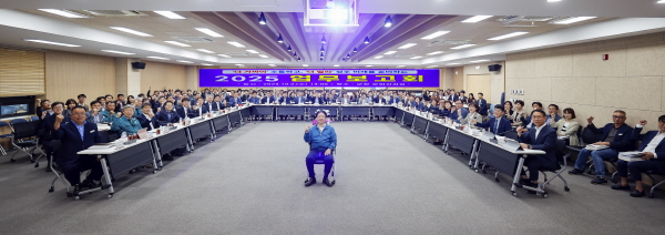 성주군은 지난 2일 군청 문화강좌실에서 팀장급 이상 간부 공무원이 모두 참석한 가운데 ‘2025 업무보고회’를 개최하고 본격적으로 내년도 군정 운영 준비에 착수했다. (사진 = 성주군)