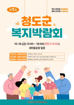 (경북=NSP통신) 김대원 기자 = 청도군(군수 김하수)은 오는 18일 청도군 새마을공원 일원에서 제1회 복지박람회를 개최한다.