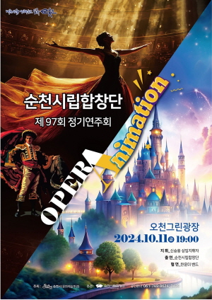 (전남=NSP통신) 남정민 기자 = 전남 순천시문화예술회관은 11일 저녁 7시 오천그린광장에서 시립합창단 제97회 정기연주회 ‘OPERA & ANIMATION’ 공연을 개최한다.