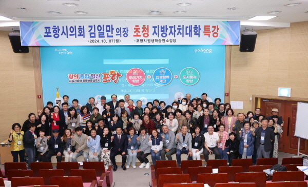 (경북=NSP통신) 조인호 기자 = 포항시의회 김일만 의장은 지난 7일 오후 뱃머리 평생교육원에서 ‘2024년 제24기 지방자치대학’ 회원 130여 명을 대상으로 특강을 실시했다.