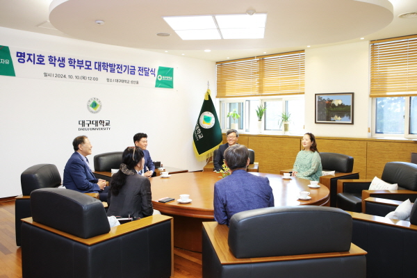 (경북=NSP통신) 김대원 기자 = 대구대학교 K-PACE센터(센터장 김화수)에 재학 중인 명지호 학생의 학부모인 명경재 UNIST 교수(바이오메디컬공학과 특훈교수)와 조은희 여사가 대학 발전기금 3100만 원을 기탁했다.
