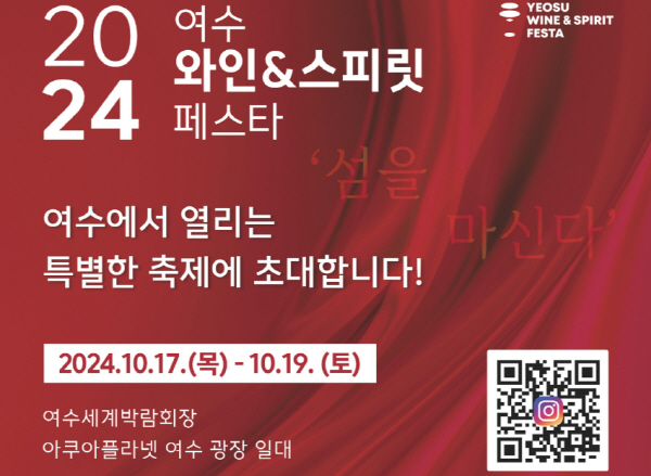 (전남=NSP통신) 서순곤 기자 = 여수시가 주최하고 범민문화재단, 인터불고그룹, 여수관광MICE협회, 남도기획, 여수전통주류협의회가 주관하는 2024 여수 와인 & 스피릿 페스타(대회장 김삼남)가 열린다.