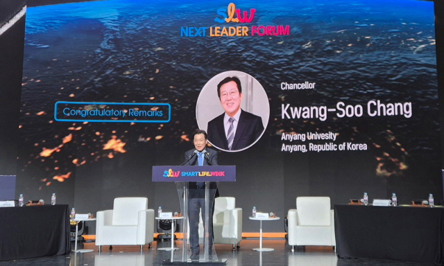NSP통신-12일 장광수 안양대학교 총장이 스마트라이프위크 넥스트 리더 포럼에서 축사하는 모습. (사진 = 안양대)