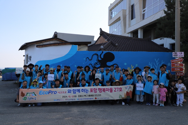 에코프로는 지난 12일 포항시 북구 흥해읍 오도2리 마을에서 포항시자원봉사센터와 연계해 ‘행복마을 27호 조성 사업’을 진행했다.