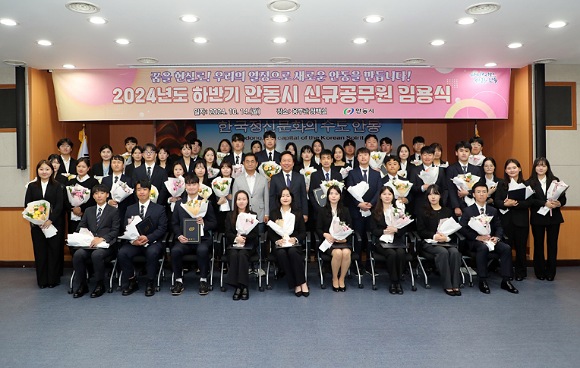 임용식에서는 권기창 안동시장이 신규공무원 한 명 한 명에게 직접 임용장과 꽃다발을 전달했으며 국장급 간부 공무원들이 총출동해 새내기 공무원의 임용을 축하하고 격려하며 그 의미를 더했다.