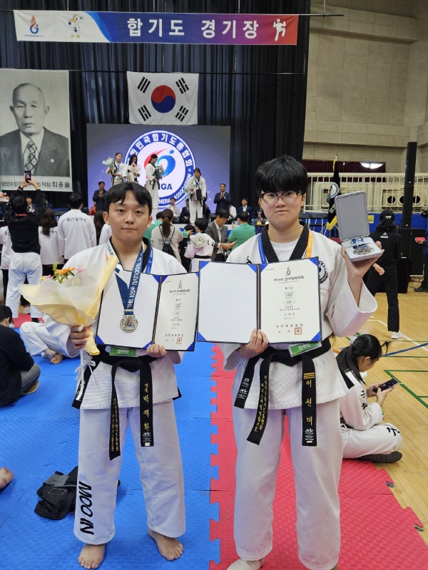 (경북=NSP통신) 조인호 기자 = 포항 선린대학교(총장 곽진환) 경찰보안무도과(구 경찰행정과) 1학년에 재학 중인 이선미, 박재환 학생이 지난 11일부터 경남 김해에서 열린 ‘제105회 전국체육대회’ 합기도 대회에서 여자대학일반부(전문) 미들급(이선미, 1학년)과 호신술(박재환, 1학년)에서 은메달을 수상하는 쾌거를 달성했다.