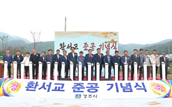 한편 준공식은 15일 오전 11시 환서교 진입로에서 개최됐으며 주낙영 경주시장과 이동협 경주시의회 의장, 최덕규 도의원 등 주요 인사와 주민 100여 명이 참석했다.
