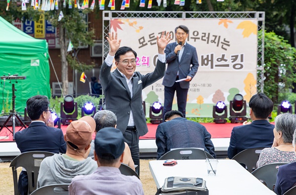 (서울=NSP통신) 강은태 기자 = 진교훈 서울시 강서구청장은 15일 오후 5시 등촌 4단지 아파트 내 공원에서 열린 ‘어울림 버스킹&베이커리 바자회’에 참석해 주민들과 시간을 함께했다.