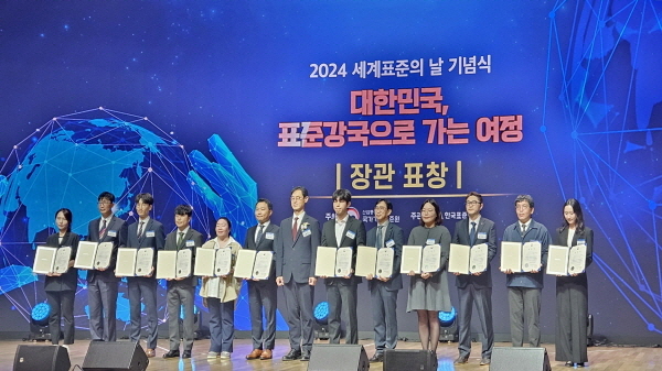 NSP통신-한국원자력환경공단은 지난 15일 대한상공회의소에서 열린 세계 표준의 날 기념식에서 지하수 분야 국가표준 제정과 국제표준화 활동을 통해 방사성폐기물 안전관리의 신뢰도를 높인 공로를 인정받아 산업통상자원부 장관 표창을 수상했다. (사진 = 원자력환경공단)