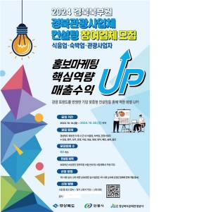 (경북=NSP통신) 조인호 기자 = 경상북도문화관광공사(사장 김남일)는 오는 28일까지 ‘2024년 경북 북부권 관광사업체 역량강화 컨설팅' 참여 업체를 모집한다고 밝혔다.