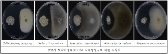 지와이균(Bacillus velezensis GY-15)은 광양시 친환경 유기재배토양에서 분리된 균주다. 해당 균주는 광양의 주요 재배작물인 애호박에 발생하는 균핵병(Sclerotinia sclerotiorum), 양상추에 발생하는 균핵병(Sclerotinia minor), 고추에 발생하는 탄저병(Colletotrichum acutatum), 토마토에 발생하는 시들음병(Fusarium oxysporum), 옥수수에 발생하는 잎집무늬마름병(Rhizoctonia solani) 등의 식물병에 무 처리 대비 평균 60%의 발생 억제 효과를 나타냈다.