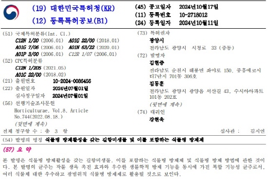 김동훈 작물환경팀장은 “시 자체 연구개발을 통해 발굴한 지와이균은 식물병 억제와 비료효과를 동시에 지닌 기능성 균주다”며 “지금까지 객관적인 데이터나 자료들이 부족해 미생물에 대한 농업인들의 신뢰가 낮았으나 이번 특허등록을 통해 효과가 검증된 우수한 균주가 현장에 공급되면 많은 농업인이 미생물을 적극적으로 활용할 것으로 기대하고 있다”고 전했다.