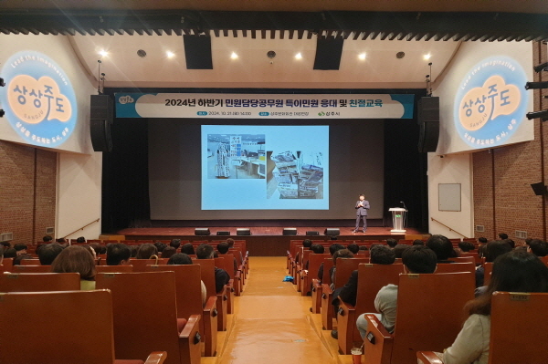 (경북=NSP통신) 김대원 기자 = 상주시는 지난 21일 상주문화회관 대강당에서 민원 응대 최일선에서 근무하는 시 본청 인허가 담당자 및 읍면동 민원담당공무원 등 500여 명을 대상으로 ‘2024년 하반기 민원담당공무원 특이민원 응대 및 친절교육’을 실시했다.