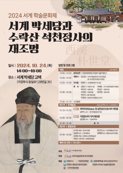 의정부시(시장 김동근)가 후원하고 서계문화재단이 주최, 서계 학술문화제 추진위원회(위원장 김인걸)가 주관하는 학술문화제는 ‘서계 박세당과 수락산 석천정사의 재조명’이라는 주제로 열린다.