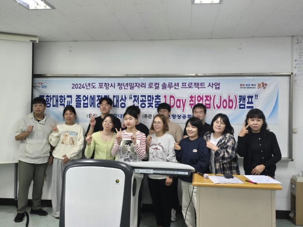 (경북=NSP통신) 조인호 기자 = 포항상공회의소(회장 나주영)는 포항시 청년일자리 로컬솔루션 프로젝트 사업의 일환으로 지난 9월 19일부터 23일, 24일, 30일까지 총 4회에 걸쳐 포항대학교 졸업예정자 75명이 참가한 가운데 취업(Cheer up) 역량 강화 취업캠프를 개최했다.