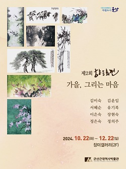 군산의 문인화 단체인 향문회(회장 유기복) 회원들이 ‘가을’을 주제로 그린 작품 30점이 전시되는 이번 행사에서는 개성이 담긴 시와 글, 그림 등을 통해 회원들의 심미적 감상과 예술적인 감성을 느껴볼 수 있다.