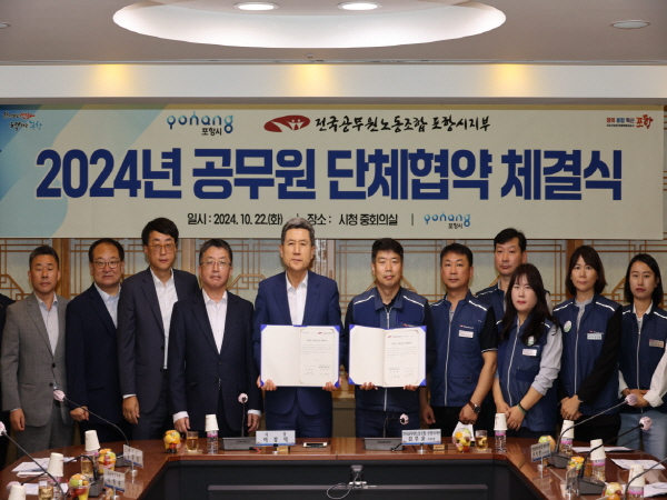 이강덕 시장은 “단체협약 체결로 포항시 공무원들의 근무 환경이 더욱 개선되고 시민들에게 더 나은 행정 서비스를 제공할 수 있을 것으로 기대한다”며 “앞으로도 공무원 노사 간 상호 신뢰와 협력을 바탕으로 시민의 행복을 위해 노력해 줄 것을 당부드린다”고 말했다.