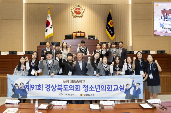 (경북=NSP통신) 조인호 기자 = 경상북도의회(의장 박성만)는 지난 23일 본회의장에서 포항 대흥중학교 학생 15명이 참여한 가운데 ‘제91회 경상북도의회 청소년의회교실’ 을 개최했다.