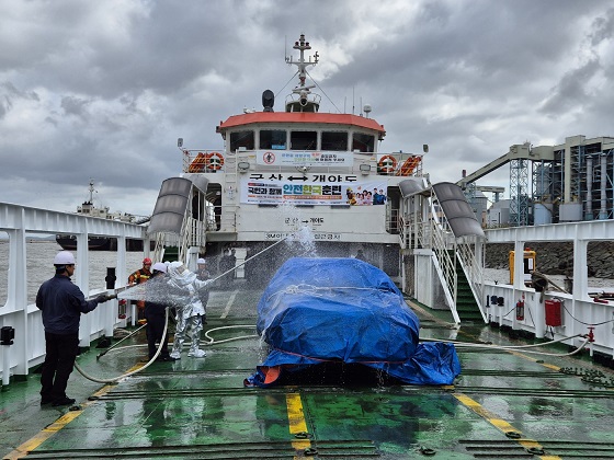 군산지방해양수산청은 23일 군산 연안여객터미널에 접안한 개야카훼리호에서 국민과 함께하는 안전한국훈련을 실시했다. (사진 = 군산지방해양수산청)