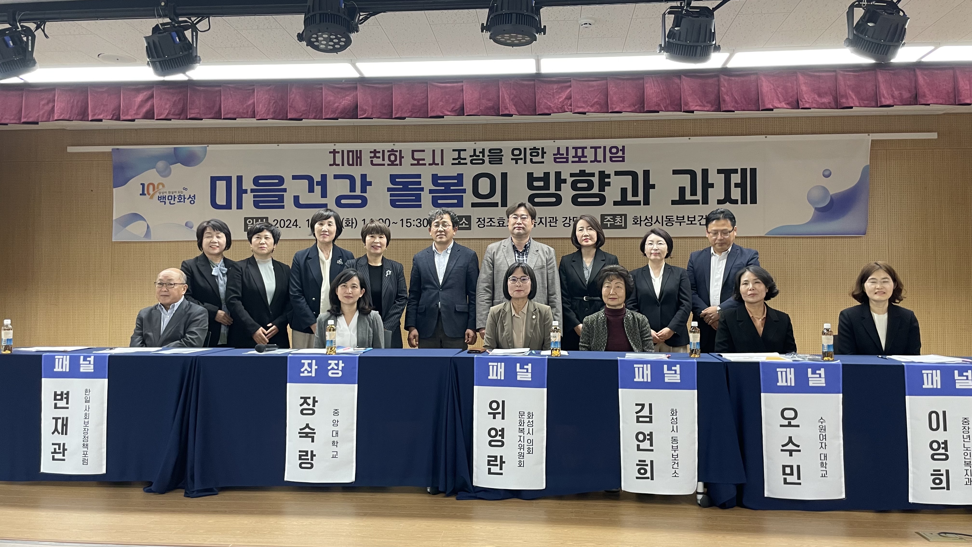 (경기=NSP통신) 조현철 기자 = 경기 화성시(시장 정명근)가 29일 정조효노인복지관에서 치매친화도시 조성을 위한 ‘마을 건강 돌봄의 방향과 과제’ 심포지엄을 개최했다.
