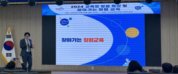 (경북=NSP통신) 조인호 기자 = 경상북도교육청(교육감 임종식)은 29일 구미교육지원청 다목적 강당에서 구미교육장을 비롯한 소속 직원 100여 명을 대상으로 ‘부패방지교육의 이해’를 주제로 한 찾아가는 청렴교육을 실시했다.