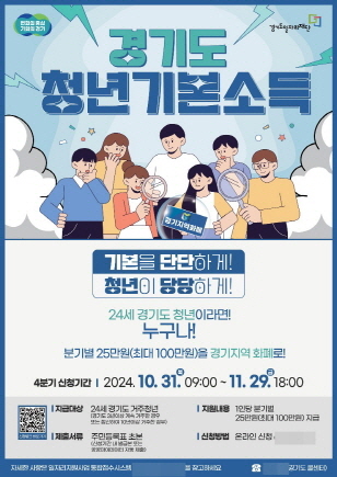 (경기=NSP통신) 김해종 기자 = 경기 안양시(시장 최대호)는 청년의 안정적인 생활기반 조성을 위한 ‘2024년 4분기 경기도 청년기본소득’ 신청을 받는다.