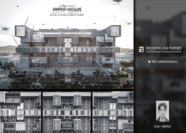 남 씨의 대상작 ‘HYPER-NEXUS: 미래의 물류 혁명’은 드론을 포함한 3차원 교통수단을 활용해 기존의 물류 시설과는 차별화된 미래형 물류 건축 프로토타입을 제안했다.