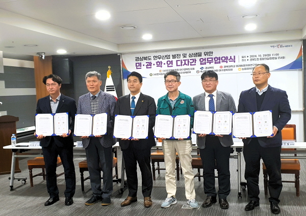 (경북=NSP통신) 조인호 기자 = 경상북도는 지난 29일 경북도청 안민관 2층 중회의실에서 경상북도 한우산업 발전을 위한 민·관·학·연 다자간 업무협약식을 개최했다.
