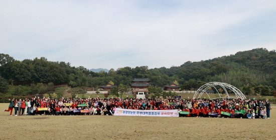 두 번째 여정으로 지난 28일 주부대학총동창회 회원 330여 명이 경남 함양군 상림공원과 산청군 동의보감촌을 탐방하며 형형색색 단풍으로 물든 가을을 만끽했다. 또한 주부대학 각 기수별로 팀을 나누어 게임을 통해 즐거운 시간을 보내며 협동심을 다졌다.