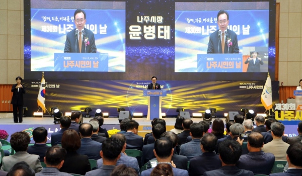 (전남=NSP통신) 김용재 기자 = 나주시(시장 윤병태)는 지난 30일 오후 2시 나주종합스포츠파크 다목적체육관서 ‘제30회 나주시민의 날’ 기념식을 개최했다.