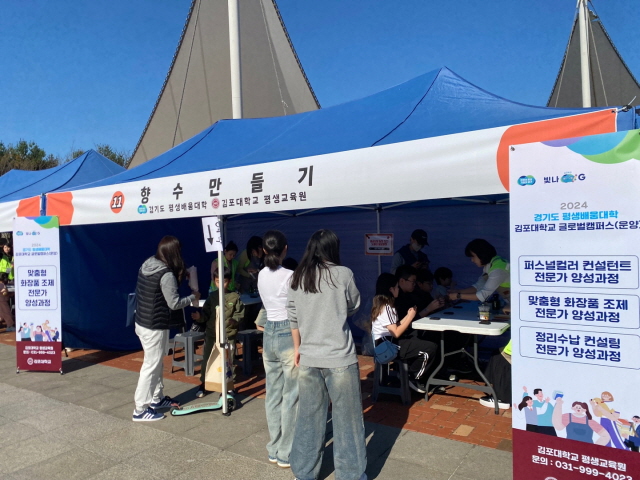 이날 행사에 김포대학교 경기도 평생배움대학 ‘맞춤형 화장품 조제 전문가 양성과정’ 수강생들은 지역 청소년들을 대상으로 ‘향수 만들기’ 부스를 운영하고 향수 만들기 체험을 통하여 맞춤형 화장품 조제 전문가 과정 진로 상담을 진행했다.
