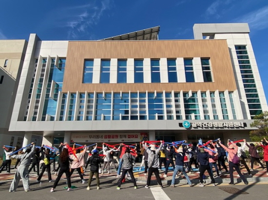 골약건강생활지원센터 앞 광장에 다 함께 몸풀기 체조 (사진 = 광양시청)